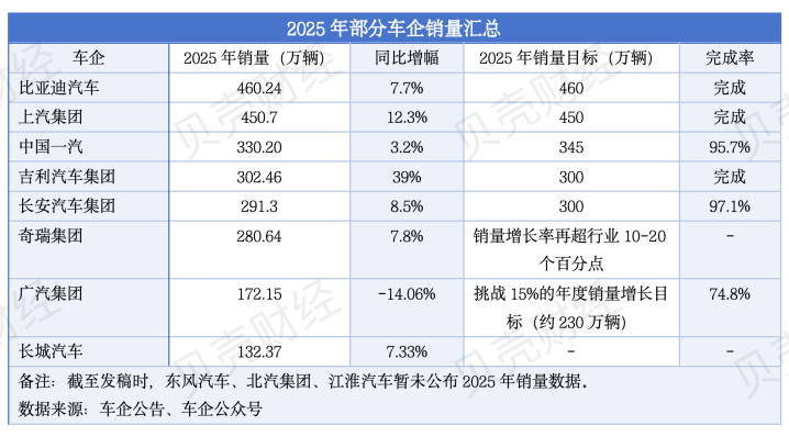 汽车集团2025年销量汇总。新京报贝壳财经记者张冰制图
