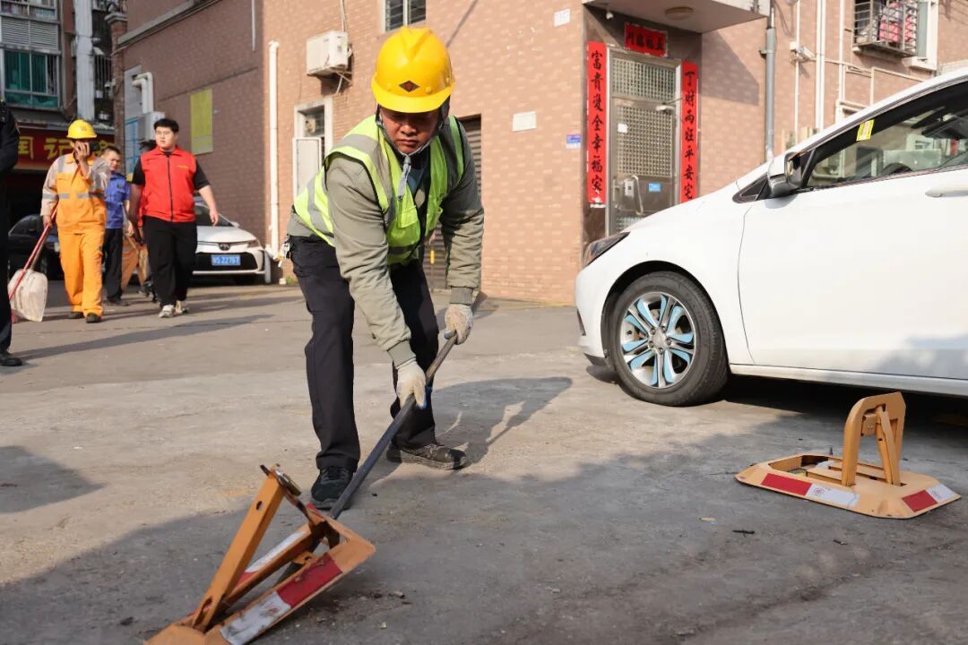 在竹塘商住小区,部分出租屋门前的公共通道上违规加装了各式地锁,将公共区域变为“私人车位”。整治现场,城管部门和竹塘村工作人员使用撬杆、切割机等工具,将地锁逐一破拆,并将遗留的螺栓头进行平整化处理,恢复路面原貌。环卫工人随即对地面进行彻底清扫,将垃圾杂物清运干净。